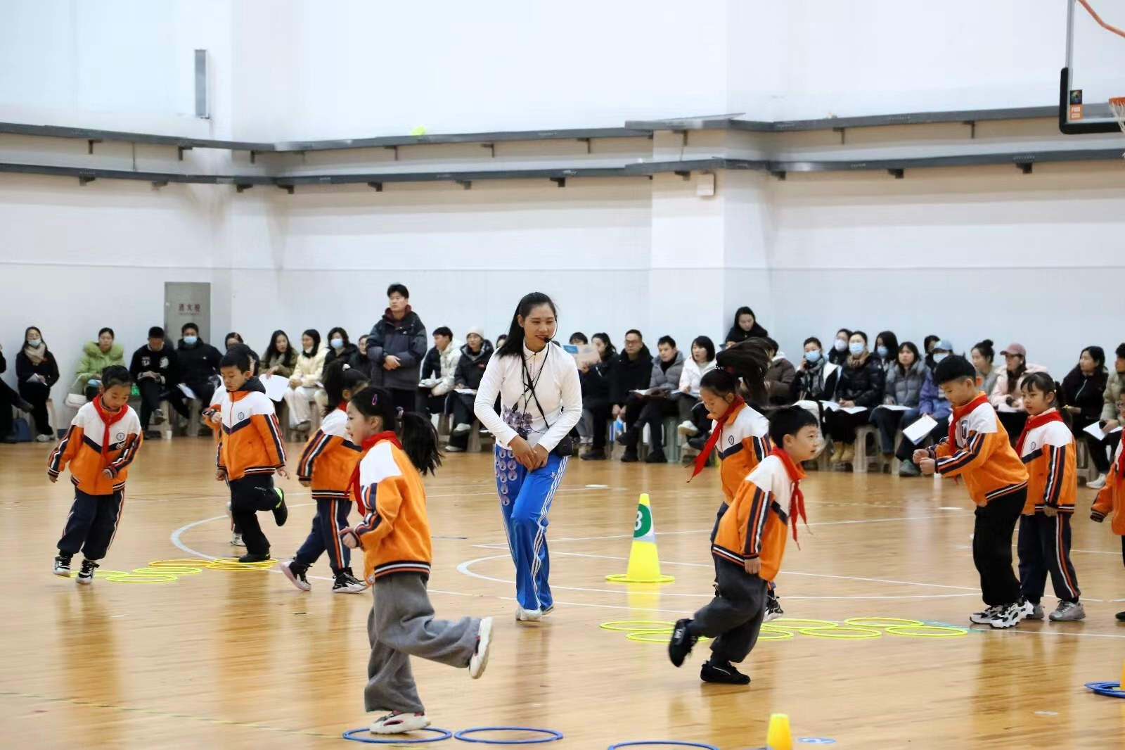 五位骨干教师分别开展了从“水平一”至“水平五”的连贯田径跳跃类课程,以“学练赛”一体化设计与情境创设为抓手,让学生在趣味互动中提升田径跳跃技能,既实现了技能教学的纵向贯通,也体现了体育教学从“技能传授”向“情感共鸣”与“多育融合”的深层探索,彰显了体育学科独特的育人价值。