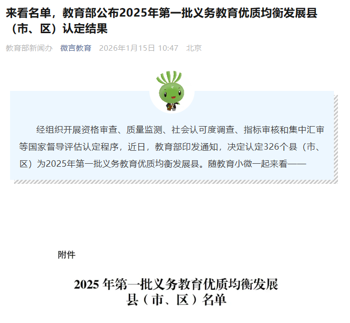 近日,江汉区、青山区、洪山区、东西湖区、黄陂区成功通过国家评估认定,荣获“国家义务教育优质均衡发展区”称号。在全国此次通过的326个县(市、区)中,湖北共9个,加上2024年首批通过的江岸区、武昌区,武汉已有七区获此殊荣,数量及占比均居全省首位,标志着我市在教育公平与质量提升的道路上迈出关键步伐,向着2027年在全省率先实现全域通过国家评估认定的目标坚实迈进。